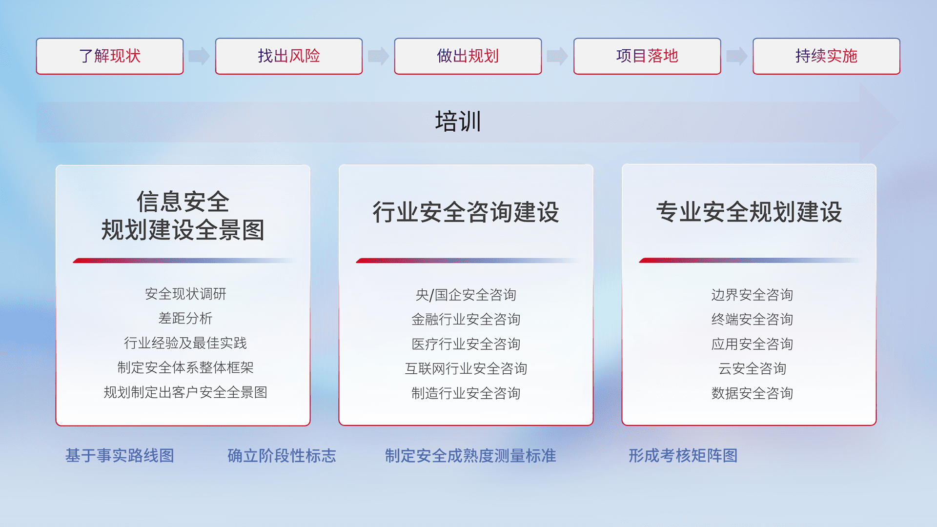 通过专业的法律咨询解读、、、、合规架构体现、、差异化解决方案、、测试实施支持等服务,,为客户量身打造等保合规体系。。