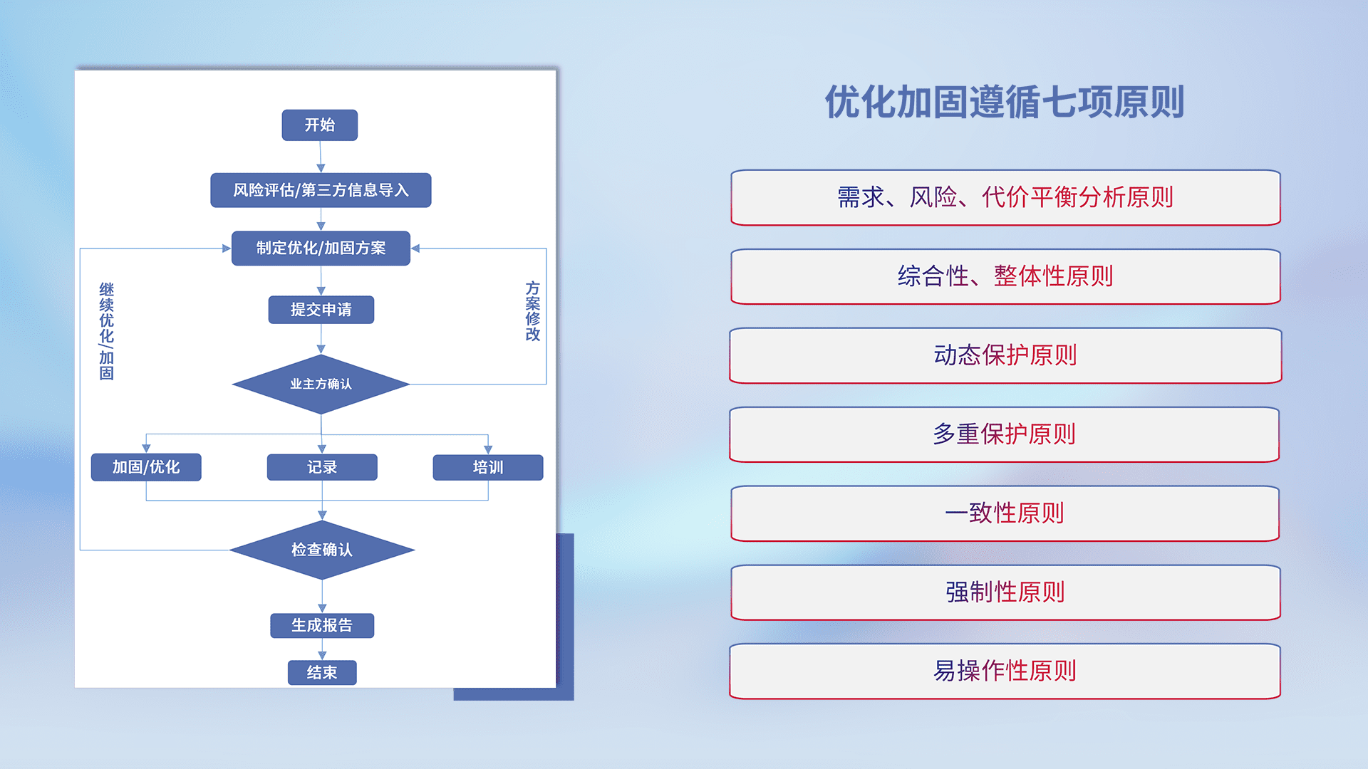 最大程度利用现有资产,,,对评估发现的问题进行封堵与整改,,,防止漏洞被利用,,,,提升整体网络安全性,,为客户带来高标准的优化加固服务。。